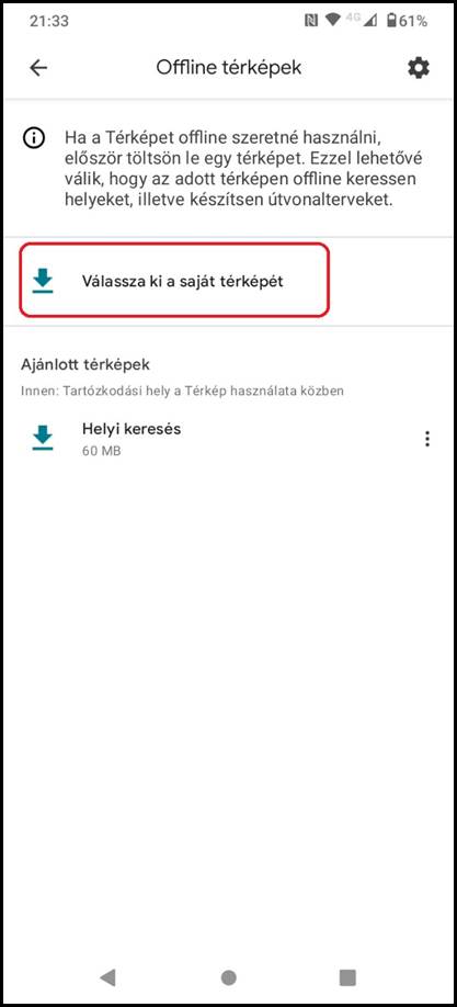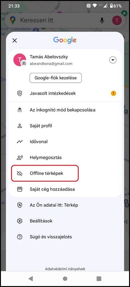 2. A menüben az Offline térképek menüpontot kell választani