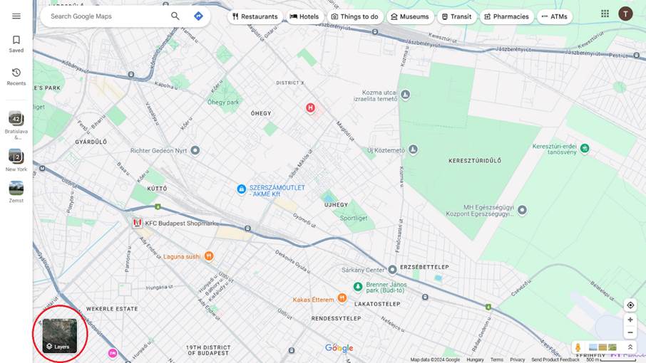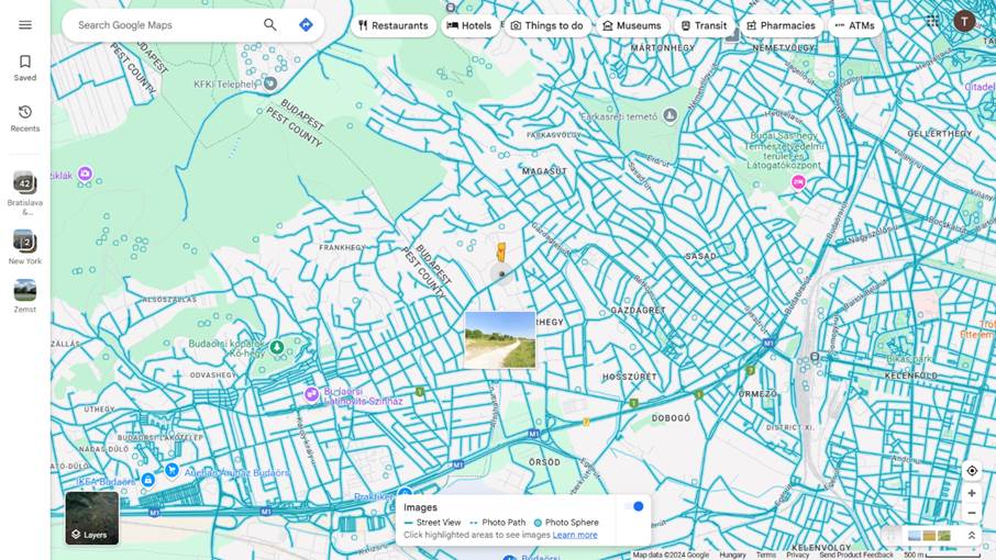- vagy azt, hogy mely területeket fed le az utcakép szolgáltatás (Street View).