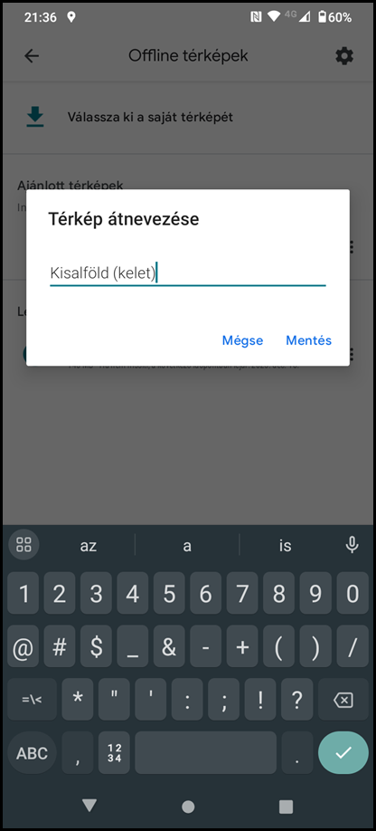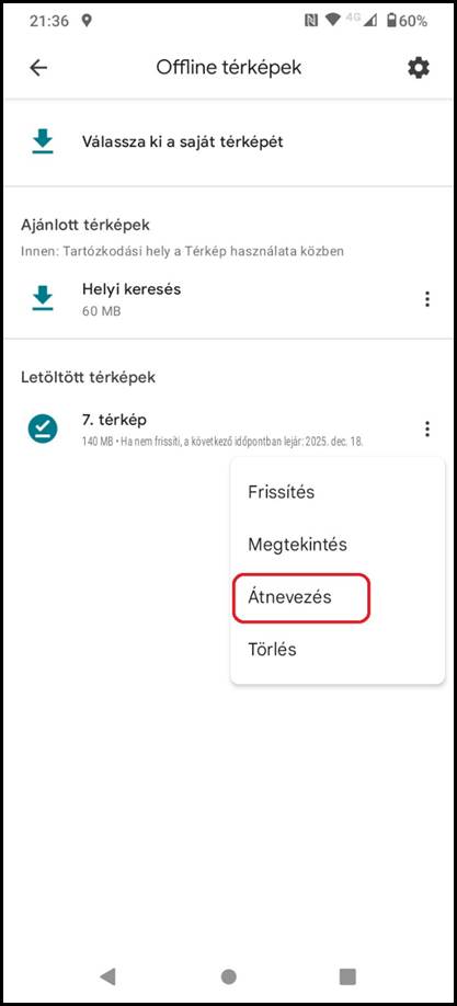 6. Igény esetén a letöltött térkép átnevezése (az adott térkép jobb oldalon található menüjére kattintva)