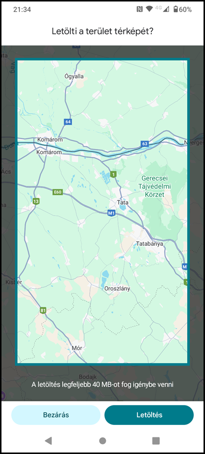 - offline térképek letöltésének lehetősége, offline térképhasználat