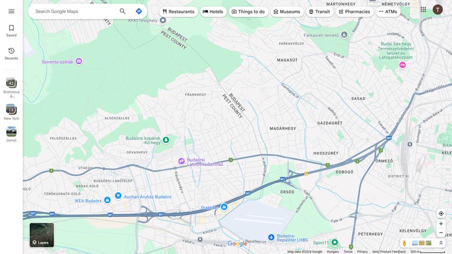 A Google térkép a https://maps.google.com/ linken érhető el, amelyre kattintva az alaptérkép jelenik meg. A következőkben egy olyan térképen mutatjuk be a lehetőségeket, amely Budapest XI., XI. kerületének, illetve Budaörsnek egy részét ábrázolja.